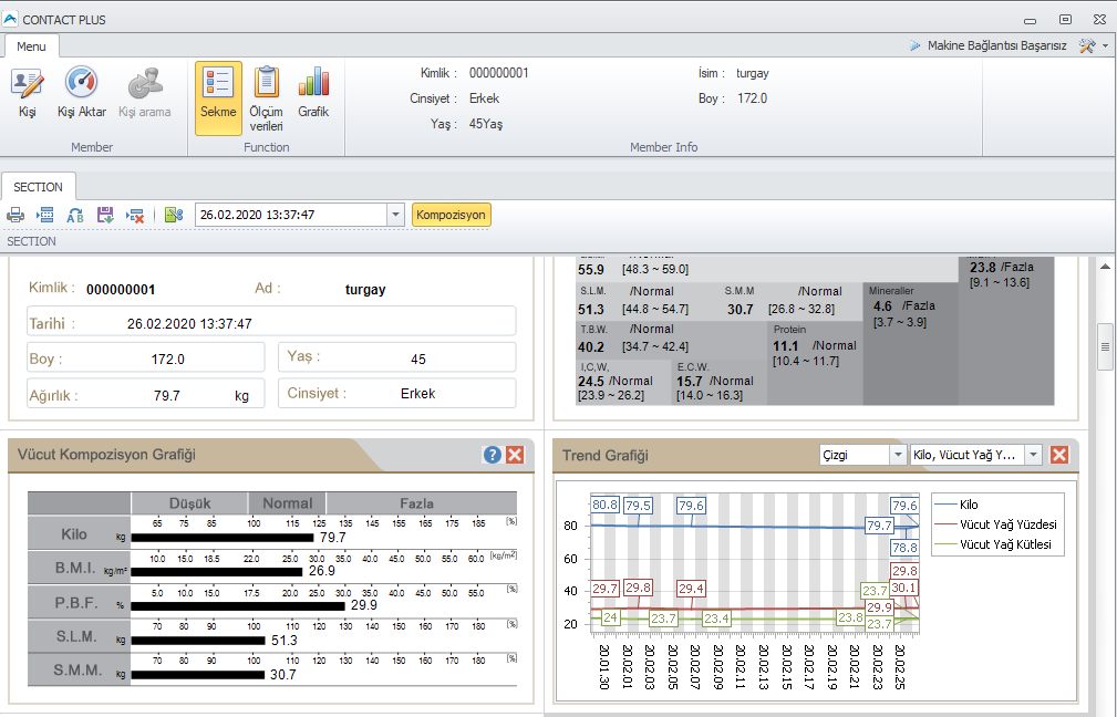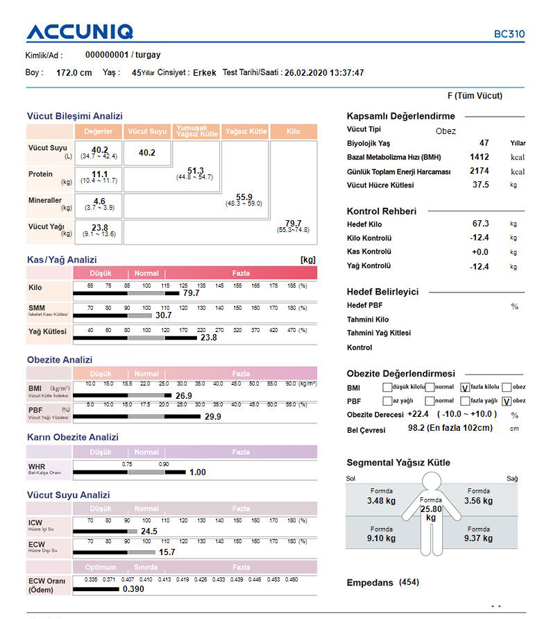 Tüm vücut, Bölgesel Ölçüm, Sağ kol, Sağ Bacak, Sol Kol, Sol Bacak, Gövde