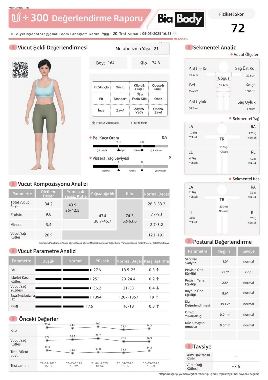 Skor Bilgileri: Sağlık Skoru – Merabolizma Yaşı, Yağ – Kas Dengesi vb.